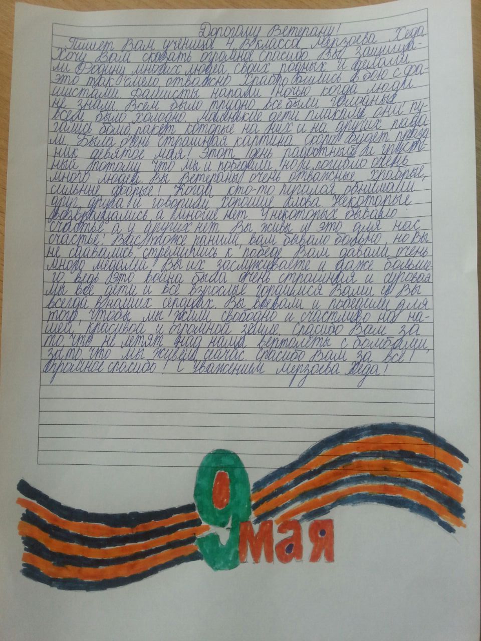 Акция "Письмо Ветерану!" - учащиеся 4 В класса!