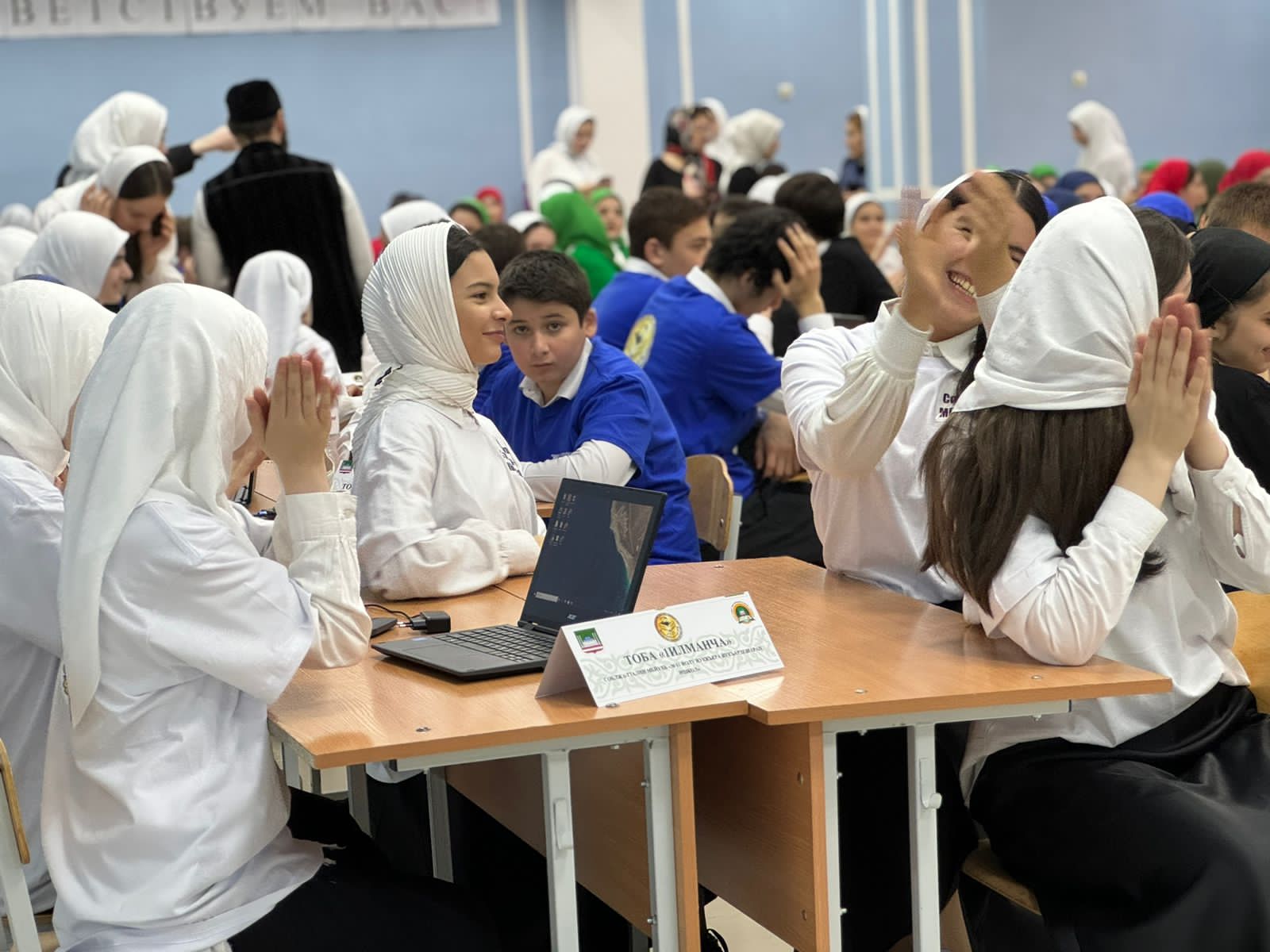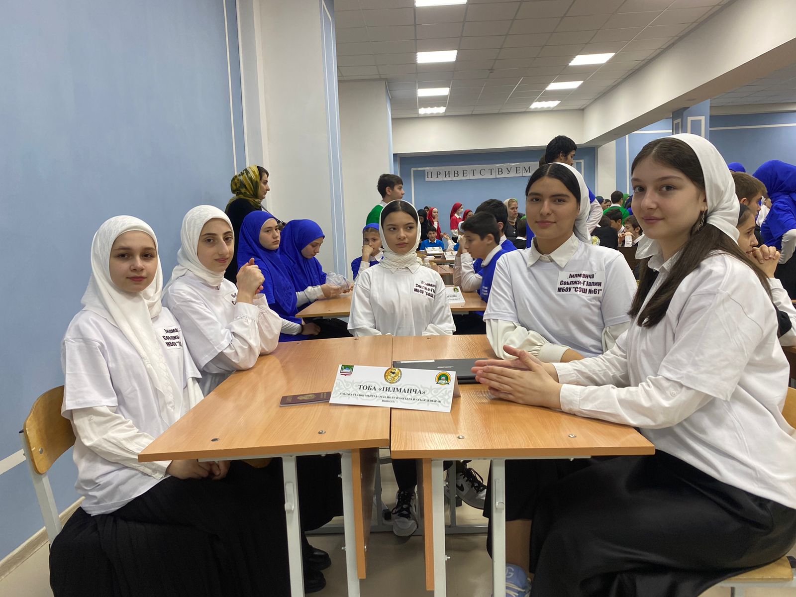 Команда "1илманча", участники игры брейн-ринг МБОУ "СОШ № 61" г. Грозного приняла участие в игре "Хьекъале корта". Игра была направлена на популяризацию и повышение интереса обучающихся к изучению чеченского языка, развитие речи и творческих способностей.