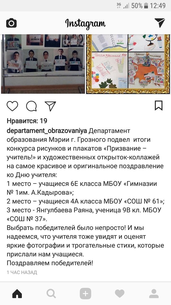 Муниципальное бюджетное общеобразовательное учреждение "Средняя общеобразовательная школа № 61" г. Грозного