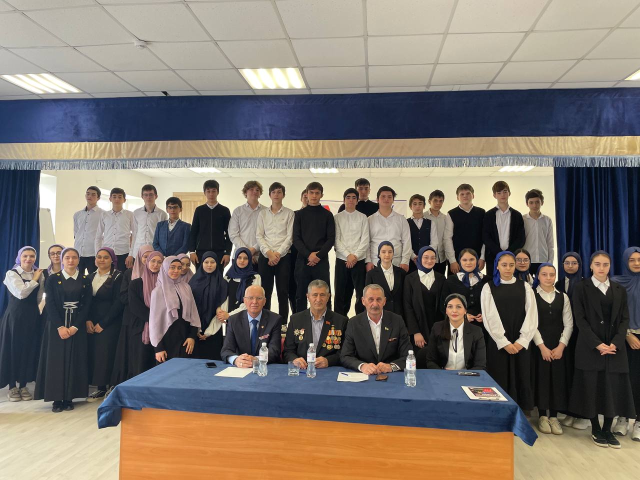 Встреча проходила в форме дружественной беседы. Ребята задавали интересующие их вопросы, и гости с удовольствием на них отвечали. В завершении встречи учащийся 10-го класса Магомадов Хамзат попросил гостей сказать ребятам напутственные слова, после чего сделали общую фотографию.