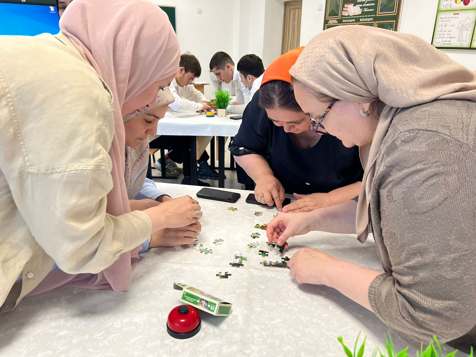 Программа состязаний включала в себя музыкальный тур, а также задания, по регламенту которых участникам было необходимо отгадать фильм по картинке, собирать пазл и находить отличия. Стоит отметить, что и учителя, и молодые ребята справились с перечисленными конкурсными испытаниями, продемонстрировали приличный уровень знаний, расширенный кругозор.