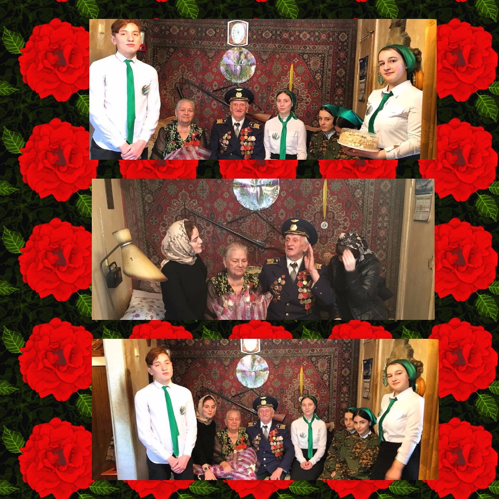 21.02.201821.02.18 года Отряд "Юные Кадыровцы" навестили ветерана ВОВ Соловьева Виктора Федоровича 1926 г.р. и его супругу Соловьеву Кларентину александровну1928 г.р. Ребята поздравили Виктора Федоровича с Днем зщитника Отечества и вручили букет цветов и торт