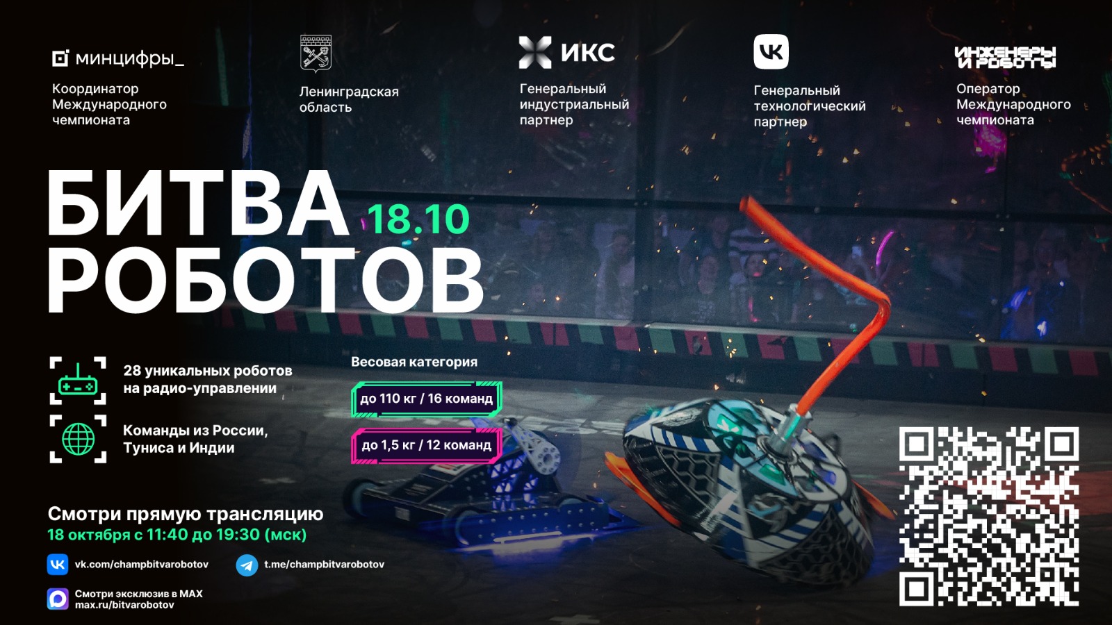 14.10.2025Битва роботов — международный чемпионат, в котором роботы сражаются в захватывающих поединках