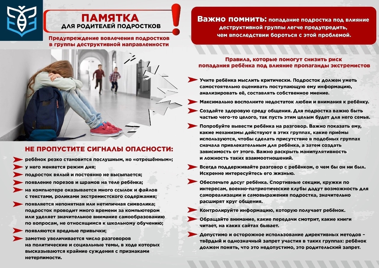 Памятка Предупреждение вовлечения подростков в группы деструктивной направленности